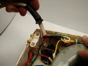 Разъедините два провода силового кабеля по месту подключения, как показано.