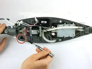 Снятие бака для воды требует демонтажа передней панели и открытия корпуса швабры. Однако после доступа замена довольно простая. Перед разборкой швабры Shark Professional Steam Pocket убедитесь, что швабра отключена от сети и бак для воды опорожнён для вашей безопасности.