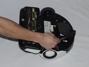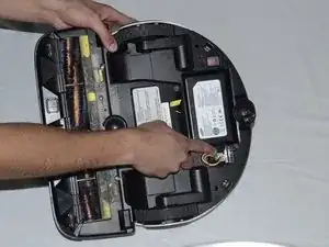 На дне робота найдите крышку батареи вдоль изогнутого края.