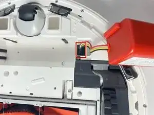 На этом этапе батарея все еще подключена к роботу-пылесосу.