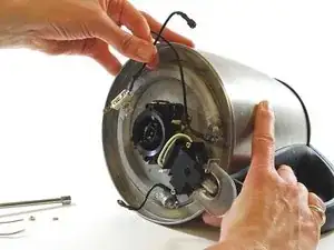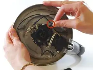 Используя головку 7/32", снимите шестигранную гайку, которая фиксирует блок питания к основанию чайника.
