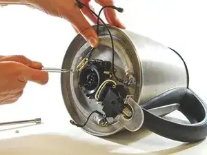 Удалите пять винтов 3/8" с основания чайника с помощью крестовой отвертки Phillips #1.