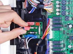Сожмите широкие стороны красного разъема, чтобы отсоединить его от блока предохранителей.