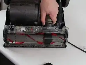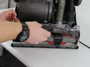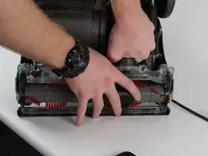 Положите пылесос на бок для удобного доступа к днищу щётки.