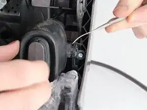 Используйте плоскую отвертку или металлическую лопатку, чтобы отодвинуть пластик в сторону и вынуть воздушную мышцу.