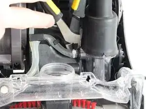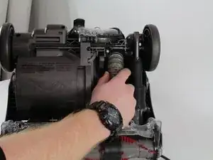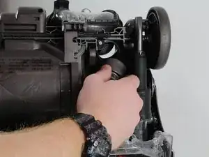 Перейдите к колесу с правой стороны пылесоса.