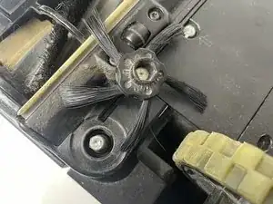 Если боковая щётка загрязнена или работает неправильно, её нужно снять для чистки или замены. Также её необходимо снять, чтобы получить доступ к внутренним компонентам устройства. Будьте осторожны при снятии — щётка легко выходит одним рывком.