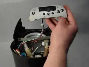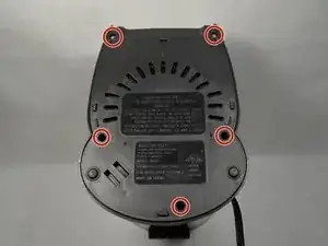 Используйте отвертку Phillips #1, чтобы удалить два винта 9 мм и три винта 11 мм на дне кофеварки и снять нижнюю пластиковую крышку.