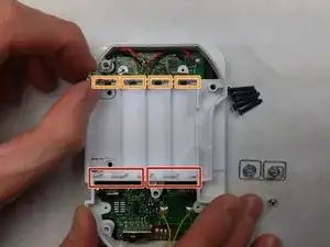 Вытащите оставшиеся металлические клеммы из их посадочных мест. Разместите их так, чтобы при снятии внутренней крышки они не застряли.