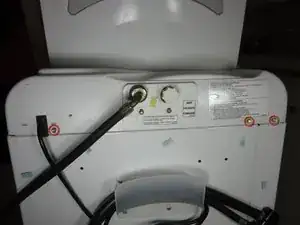 Используя трещотку с головкой 5/16" или разводной ключ, снимите три винта с задней верхней части машины.