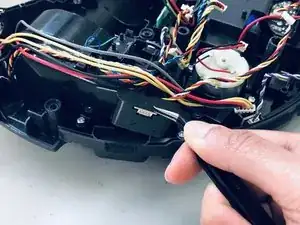 Используйте лопатку или пинцет, чтобы отсоединить белый разъёмный кабель от гнезда на материнской плате.