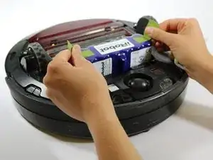 Пластиковым монтажным инструментом подденьте лицевую панель и снимите её с Roomba.