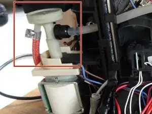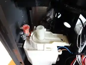Снимите силиконовый шланг, который ведет к водному соединению бака, изнутри.