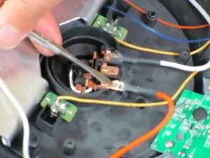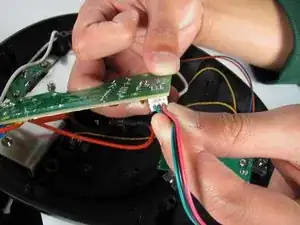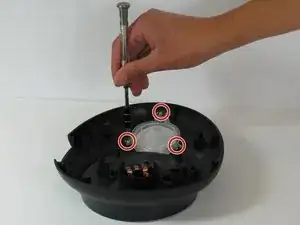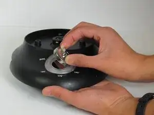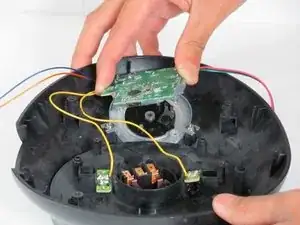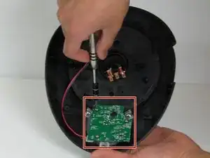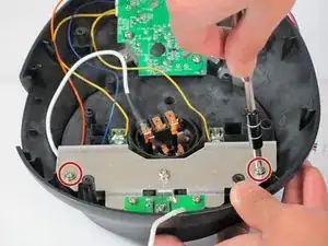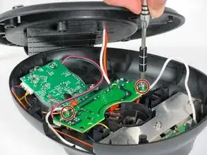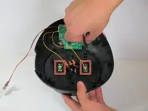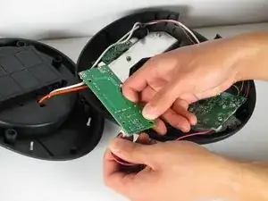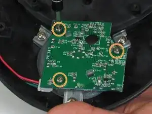 Снимите четыре винта Phillips #2 длиной 12 мм, окружающих основание, затем поднимите нижнюю половину основания, чтобы получить доступ к платам внутри устройства.