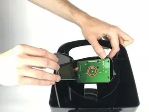 Сдвиньте дисплей в корпус кофеварки, чтобы получить доступ к винтам сзади.
