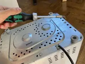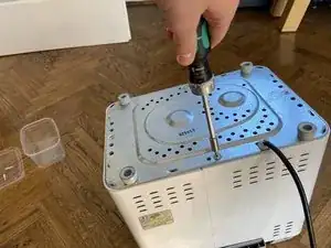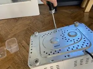 Выверните шесть винтов (PH1) вокруг серой части (под снятой крышкой)