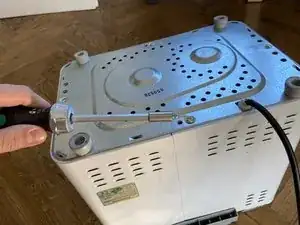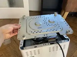 Когда все винты с нижней стороны будут удалены, металлическую крышку можно просто поднять — станет виден мотор
