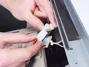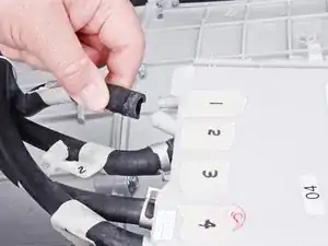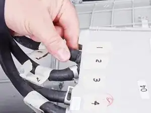 Используйте руки, чтобы отвинтить кабель панели управления от дозатора для моющих средств.