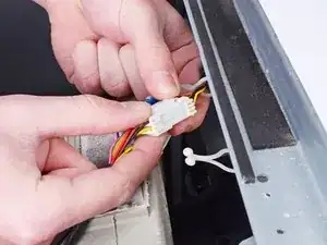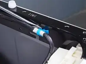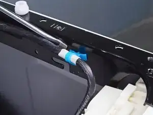 Вставьте отвертку с плоской головкой между шасси и пластиковым зажимом, который удерживает кабель панели управления.