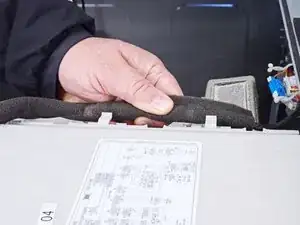 Используйте плоскогубцы, чтобы сжать хомут шланга дозатора для моющих средств и отвести его от сборки.