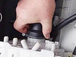 Используйте плоскогубцы, чтобы осторожно вращать шланг дозатора для моющих средств взад и вперед вокруг его соединения и ослабить его.