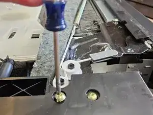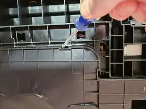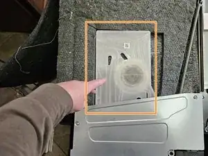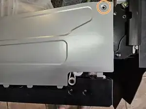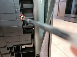 Отверткой Phillips отвинтите винт, который фиксирует нижнюю поддонную панель.