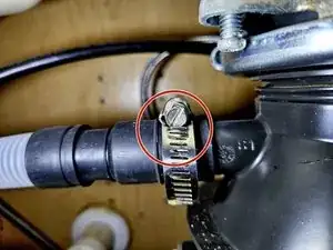 Используйте плоскую отвертку, чтобы ослабить зажим, фиксирующий сливной шланг.