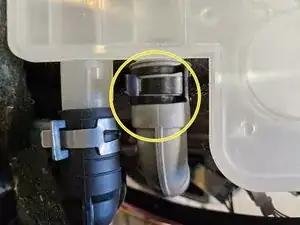 Вы можете перенести пружинные зажимы с повреждённого шланга на новый. Приступите к повторному подключению нового внутреннего шланга у боковой панели, а другой конец подсоедините к сливной помпе.