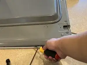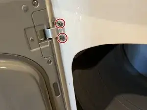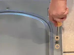 Заново установите четыре шарнирных винта на петлях заменяемой дверцы с помощью отвертки Phillips #2, электродрели или торцевого ключа на 8 мм.