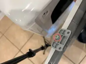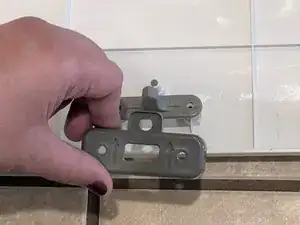 Нижняя петля и её противоположный держатель петли также должны быть поменяны местами. Поднимите обе детали, поверните на 180 градусов и установите их на другую сторону рамки дверцы.