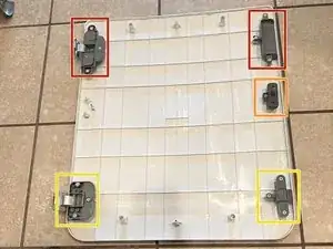 На нижней пластине рамки дверцы есть 5 деталей, которые нужно переместить на противоположную сторону рамки.