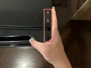 Сместите дверь рукой так, чтобы эти три отверстия для винтов оказались на одной линии.
