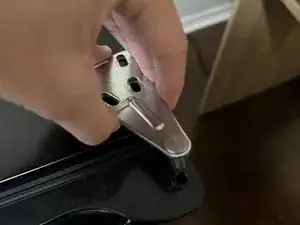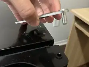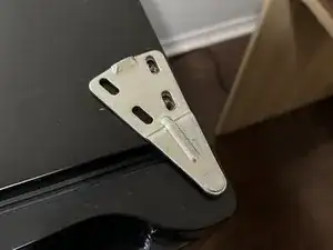 Аккуратно установите верхнюю петлю, чтобы она совпала с этими отверстиями.