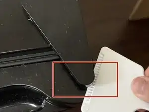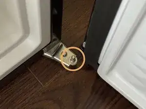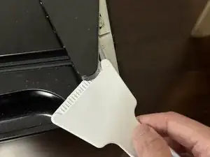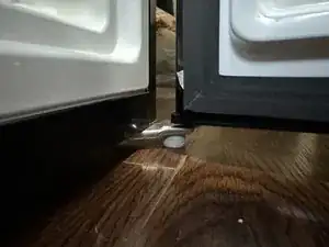 Используйте пластиковую лопатку, чтобы снять крышку петли на верхней части морозильника.