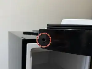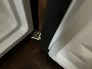 Наконец, плотно нажмите крышку на петлю, чтобы зафиксировать её. Дверь полностью заменена.
