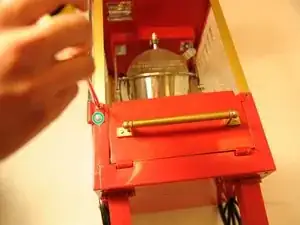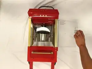 Данное руководство поможет снять прозрачную дверь с попкорнницы. Для начала снятия двери убедитесь, что устройство отключено от сети и лежит на боку.
