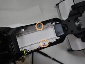 Удалите два винта Philips #1 длиной 13,8 мм, которые крепят ручку переноски к основному корпусу.