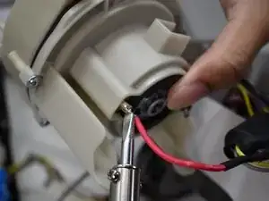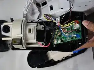 Два соединения проводов можно отпаять, чтобы полностью освободить двигатель от остальной части пылесоса.