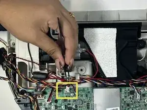 Удалите два винта 8 мм, удерживающие мотор в пылесосе, крестовой отверткой Phillips #1.