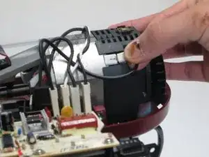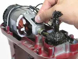 Удалите два винта Phillips #2, удерживающие двигатель, которые расположены рядом с вентилятором сзади двигателя.