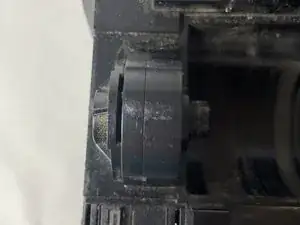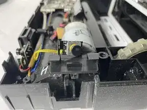 Переверните устройство и найдите зазор рядом с мотором, с той же стороны, где был снят датчик. Вставьте плоскую отвёртку и слегка поверните, чтобы поддеть и снять мотор.