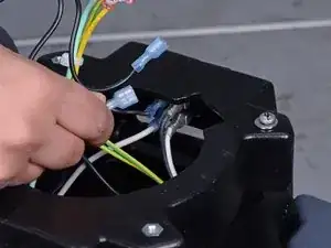 Отсоедините два чёрных провода двигателя от переключателя, установленного внутри корпуса экстрактора.