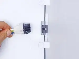 Используйте плоскую отвёртку или аналогичный инструмент, чтобы сжать фиксатор разъёма, прикреплённого к узлу шнека ледогенератора.