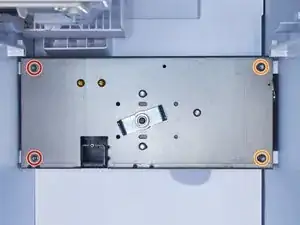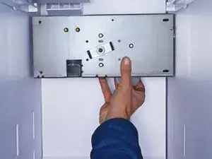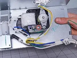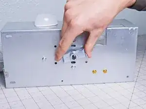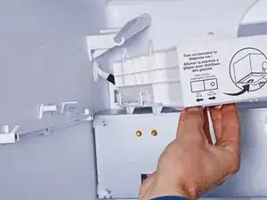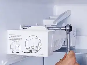 Используйте трещотку с насадкой 1/4 дюйма, чтобы отвинтить три винта, крепящих узел ледогенератора (показано с удалённым узлом):