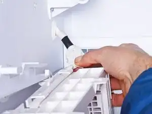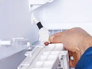 Полностью выдвиньте лоток для льда из его посадочного места в шасси.
