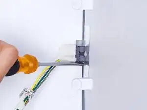 Используйте трещотку с насадкой 1/4 дюйма или плоскую отвёртку, чтобы отвинтить винт длиной 11.6 мм, фиксирующий провод заземления.