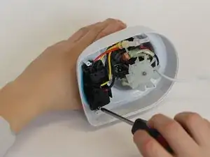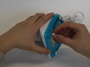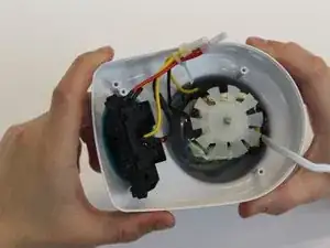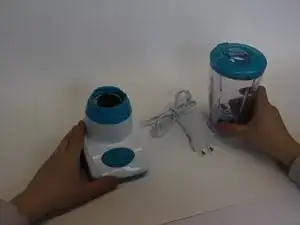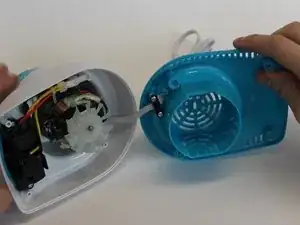 Снимите синюю нижнюю крышку с остальной части устройства, чтобы открыть внутренности.