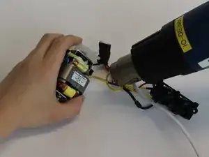 Открутите чёрный элемент, чтобы можно было сдвинуть синюю часть в сторону от остальных деталей.