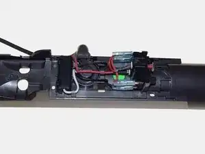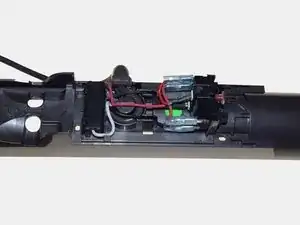 Уберите четыре черные винта T-10 длиной 15 мм, которые теперь видны на задней части канала шланга пылесоса, с помощью отвертки Phillips 0 из набора инструментов iFixit.