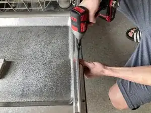 Снимите по три винта с каждой стороны дверцы посудомоечной машины (всего шесть винтов).